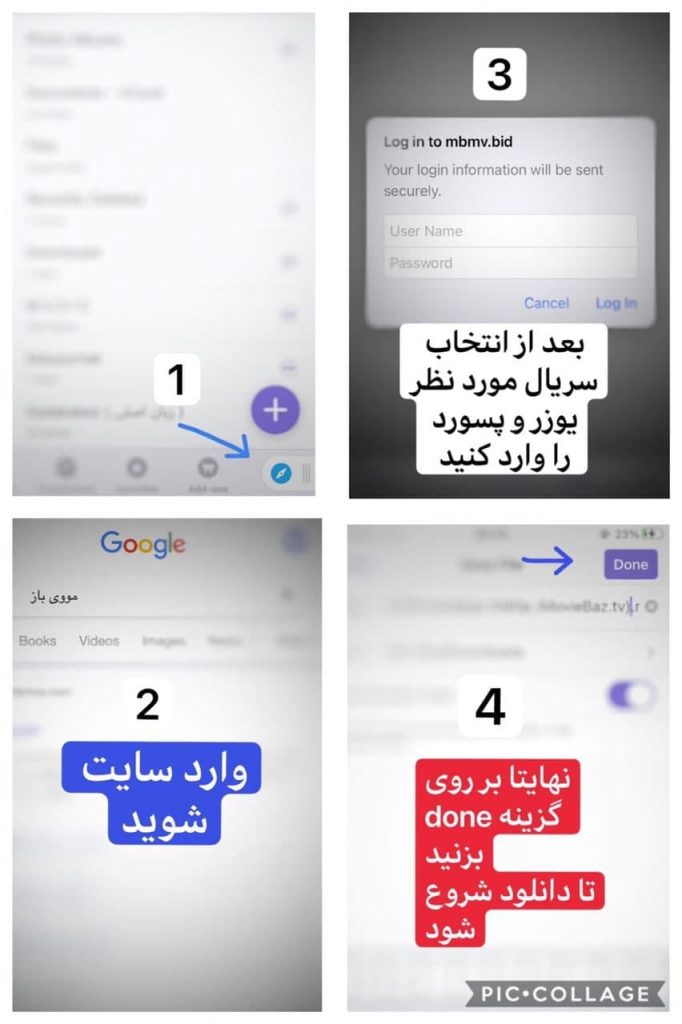 برای دانلود سریال ها، ابتدا برنامه Documents رو از اپ استور دانلود کنید. سپس طبق شکل یا ویدئوی آموزشی، سریال را دانلود نمایید: